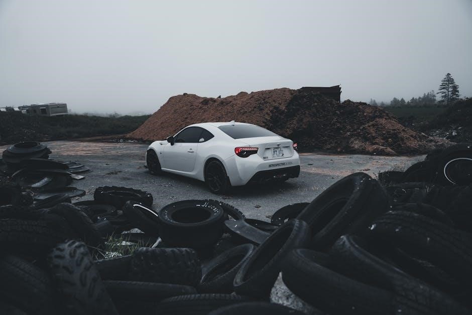 Regularly check tire pressure‚ especially with temperature changes. Rotate tires every 5‚000-7‚500 miles to ensure even wear. Inspect tires for damage‚ such as cuts or bulges‚ and replace them when tread depth reaches the legal limit.